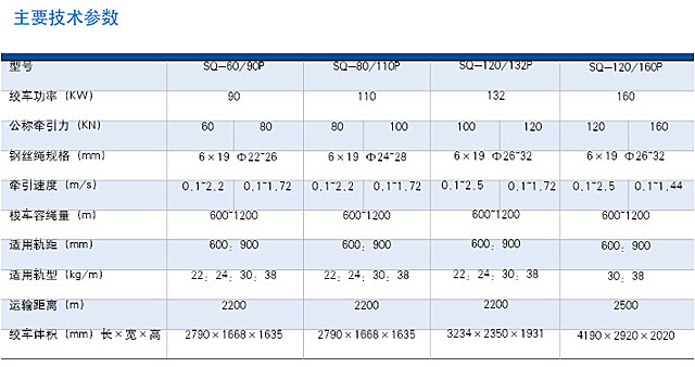无极绳连续牵引系统中,尤其适用于牵引更大吨位支架整体搬运。● 配置电机功率分别为90KW、110KW、132KW和160KW;● 绞车采用抛物线单滚筒或双滚筒结构,配有矿用隔爆兼本质安全型变频控制装置,实现了无级调速。● 采用变频控制,具备实时监控、速度和位置显示、移动紧急停车和语言通讯,具有四象限运行和能量回馈制动等功能,有节能降耗、电机使用寿命长等优点。